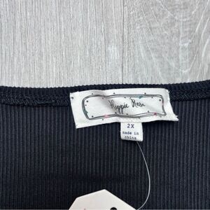 Size 2X black long sleeve V neck top. Twist knot detail in front. New with tags. Chest 21in. Length 22.