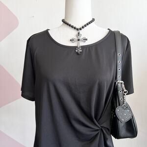 Black Front Twist Top, Y2K, Minimalist, Gothic, Grunge, Edgy, XL, Goth, Workwear