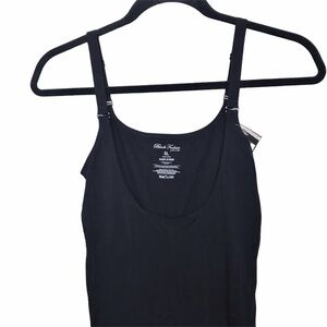 New with tags! Black, seamless shaping bodysuit by Black Fuchsia by Secret Lace LLC. Wear your own bra singlet style. Flattens the tummy, eliminates back bulge, and lifts and shapes. Has adjustable straps.
