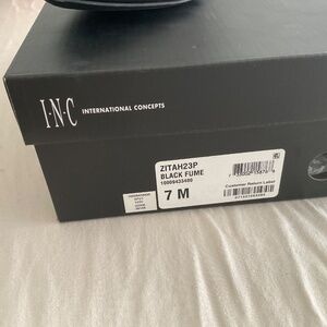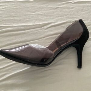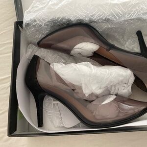 Black fume heels size 7. Worn one time for a Christmas party and have been kept in the box since.