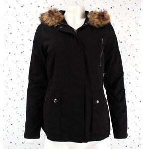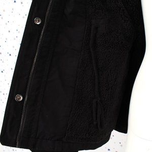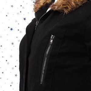 Black Fur lined Utility Jacket Faux Fur Hood