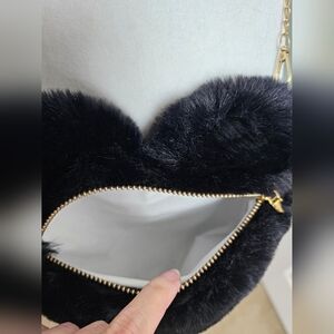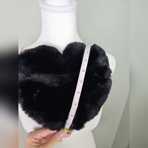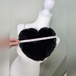 NWT Black Furry Heart Bag With Gold Chain. Please see pics for measurements. Soft fabric and very lightweight. Chain length is adjustable.