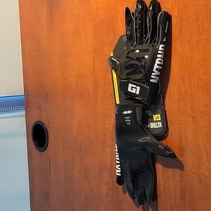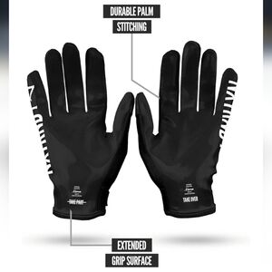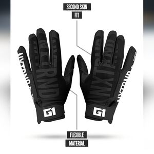 Sleek black sports glove with G1 branding. Perfect for athletic activities. New Football gloves infused with NXT GRIP. Size youth large.