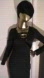 black guess dress long sleeve criss cross open bosom nice and black above knee material feels like a soft suede very nice I've never felt a material on the dress like this a nice soft suede like material ZIP down to the middle of the back in the back of the dress this dress is really nice sexy could be wearing out to dinner before to the club it is a really nice body con dress this is my guess this dress makes a statement honey and it is very sexy