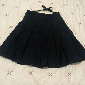 Size 2 GAP cotton and spandex pleated skirt. Hits to knees. Ribbon around waist to tie bow. Thick Cotton material with a little bit of stretch to it. Preowned in great condition. Black is still very black, not faded. No signs of damage.