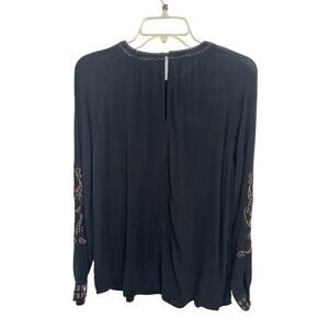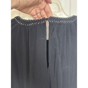 Black Gauzy Beaded Boho Witchy Long Sleeve Top Size Small Whimsigoth Indie