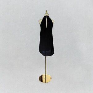 Black Gauzy Halter Neck Dress Sleeveless Textured Keyhole Detail Mini