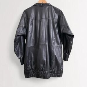 Vintage Black Genuine Leather Coat Jacket XXL Grunge Minimalist 80s Retro