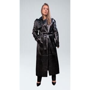 Black Genuine Leather Crocodile-Embossed Trench Coat – Size M