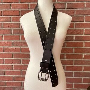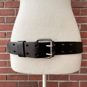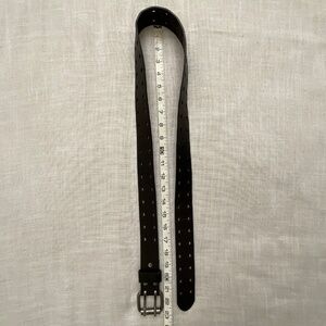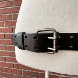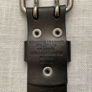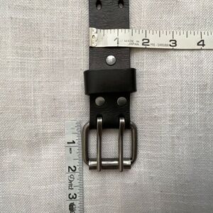 Black Genuine Leather Double Hole Prong Metal Roller Buckle Belt Size 40/100