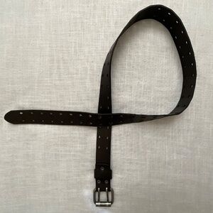 Black genuine leather belt with double hole, prong and gunmetal color roller buckle, adjustable belt.