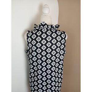 Black Geometric Print Sleeveless Top by Mud Pie Size Medium Ruffle Neckline Excellent condition