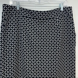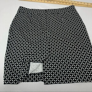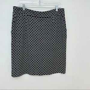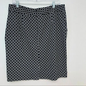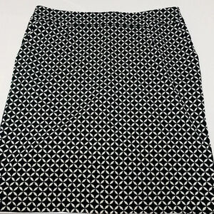Black Geometric Skirt 14 Black White Pockets Knee Length Classic Career Office