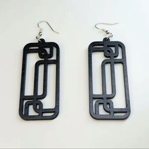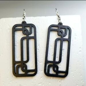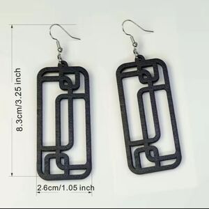 Black Geometric Wooden Dangle Earrings Bohemian Ethnic Style