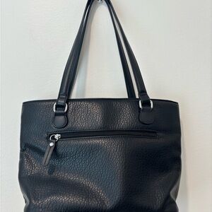 Elegant black bag with a sleek design. Perfect for everyday use. Features a spacious interior and durable handles.