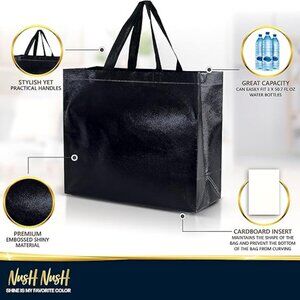 REINFORCED BOTTOM – Each of the 13(W)x 5(D)x11"(H) large black gift bags comes with a cardboard insert to prevent the bottom of the bag from curving and maintain the tote bag shape even when the bag is empty.
