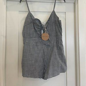 A gingham checkered black and white romper perfect for the summer. Has a tie in the front and has adjustable straps also has an inner lining.