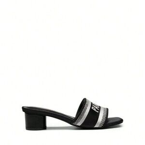 Black Glamorous Women's Glittery Chunky Heeled Square Toe Mule Sandals