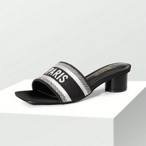 Black Glamorous Women's Glittery Chunky Heeled Square Toe Mule Sandals