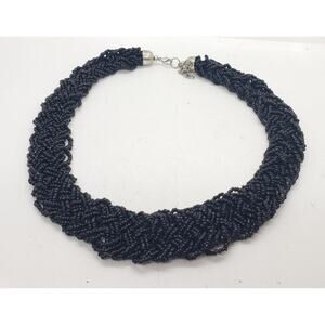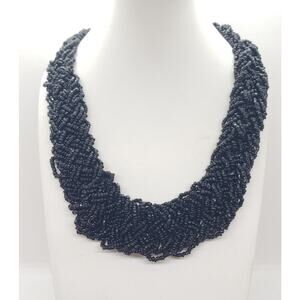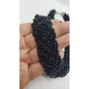 Statement Black Glass Bead Multi Strand Braided Necklace Chunky Twist Collar 18in