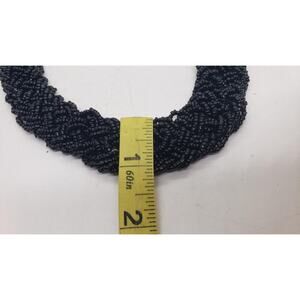 Black Glass Bead Multi Strand Braided Necklace Chunky Wide Twist Collar Choker