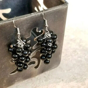 Black Glass Pearl Grape Cluster Handmade Dangle Earrings