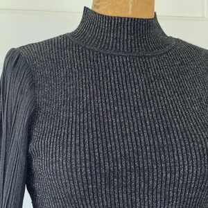 Black Glitter Balloon Sleeve Top - New With Tag - Size Small
