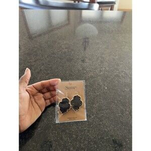 Make a dazzling statement with these elegant Black Glitter Pave Rhinestone Moroccan Drop Earrings. These exquisite earrings feature a unique Moroccan-inspired design, adorned with shimmering black rhinestones set in a glittering pave pattern. The gold plated dangle adds a touch of luxury and sophistication, making these earrings perfect for any special occasion or adding a bit of glamour to your everyday look.