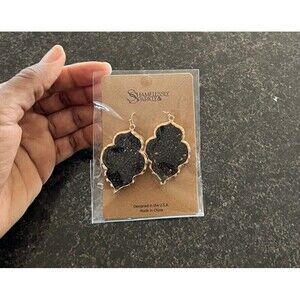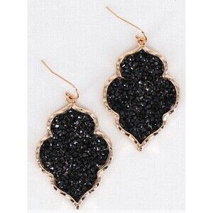 * Keywords: Black Glitter Pave Rhinestone Earrings, Moroccan Drop Earrings, Gold Plated Dangle, Statement Jewelry, Elegant Earrings, Trendy Fashion Jewelry, Sparkling Rhinestones, Special Occasion Earrings, Lightweight Jewelry, Gift for Her, Unique Earrings