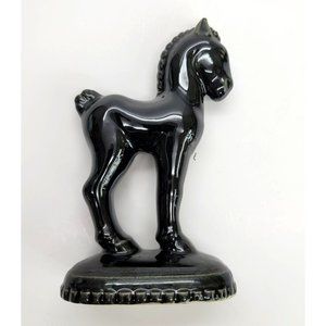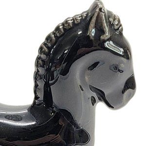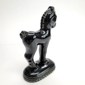 Black Glossy Trojan Horse Figurine Vintage Statue Glossy Repaired PR325