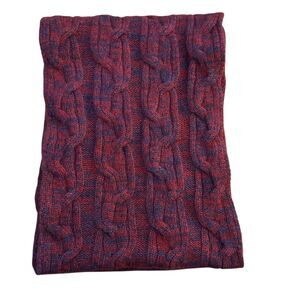 Black Goat Blue and Red Soft Cable Knit Cashmere Scarf 56"