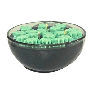 Enjoy our Black Gold Bowl Candle With Floating Leaves! Limited Edition; complimentary gift with purchase. Beautiful details include a heat resistant grey glass bowl, black wax and petite green leaves.