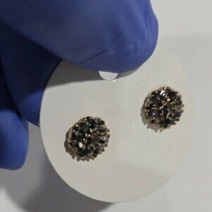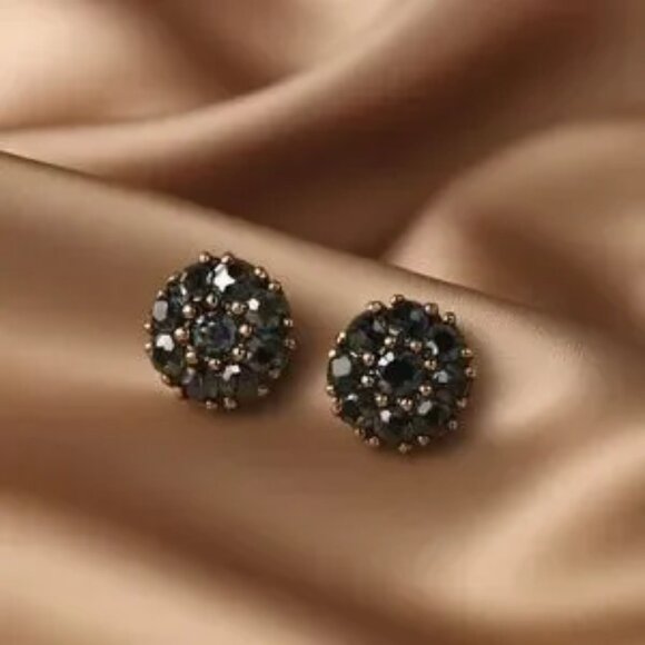 black gold earrings, cluster stud earrings, statement jewelry, faceted gem earrings, elegant black studs, bold earrings for women, gift for her, fashion jewelry, modern accessories, evening jewelry