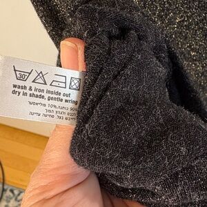 Elevate your style with this chic black glitter top. Perfect for any occasion, this top adds a touch of sparkle to your wardrobe. It’s slightly boxy and oversized. Versatile.