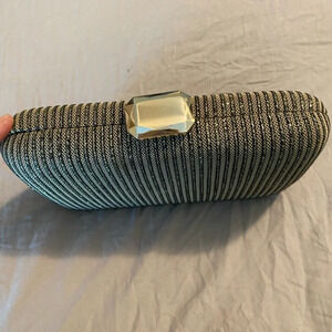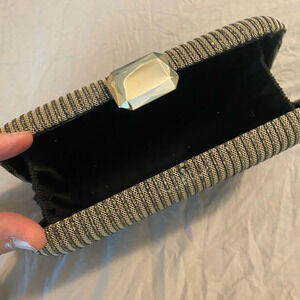 Black Gold Hard rubbed Clam Snap lock Clasp Evening Party Cocktail Clutch Bag