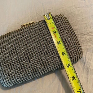 The bag features gold hardware with a push clam lock closure for added convenience. The exterior is made of black gold and glitter, giving it a stylish and elegant look. The bag is lined with black fabric and has a gold and glitter exterior, which adds a touch of sophistication to your overall look. This clutch bag is perfect for weddings, parties, Christmas holiday, new years and formal events, and is sure to impress your guests.