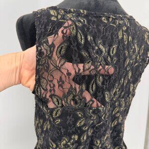 Black Gold Lace Sleeveless Midi Dress Womens S Whimsigoth Fairy Grunge Metallic