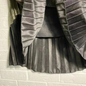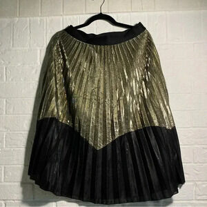 Black & Gold MIDI Skirt Pleated Size Medium Party Wedding Stretch Waist Shiny