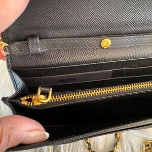 Black & Gold Prada Saffiano Leather Wallet On Chain - Never Used