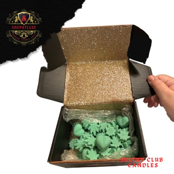 You'll receive a black box with a generous amount of Sultry Melts™. Complimentary gift included with purchase. Create an atmosphere filled with your favorite fragrances, with our super cute, climate friendly wax melts. Our fragrances relieve stress and tension, and aid with mental focus and clarity. Enjoy Sultry Club® fragranced candles and wax melts, paired with thrifted vessels.