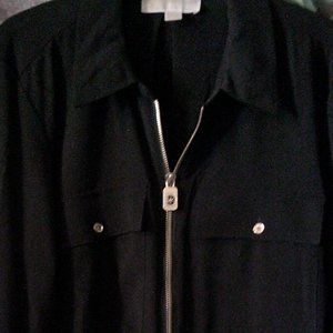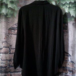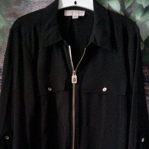 Black Gold Zip Pockets Long Sleeve Roll Tab Sleeve Blouse