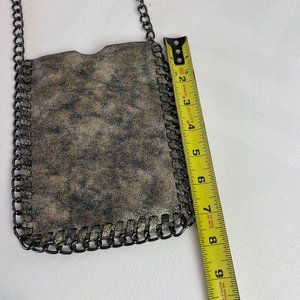 Black & Golf Leather Crossbody Bag With Chain Strap