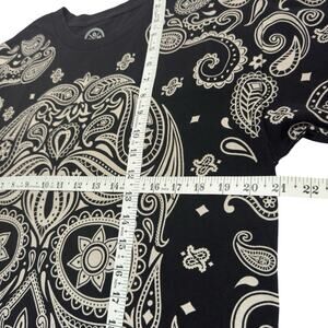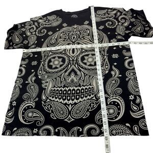Black Goth Graphic T-Shirt L Los Muertos Sugar Skull Paisley Y2k ODM Tattoo Art