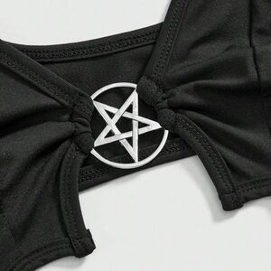 Introducing our edgy and stylish black bralette, designed for the bold and confident Gothic fashion enthusiast. This micro crop top features a unique pentagram detail, perfect for making a statement at night outs, stages, or concerts.