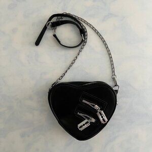 Black Gothic Heart Shaped Blade Zipper Chain Shoulder Bag Purse
