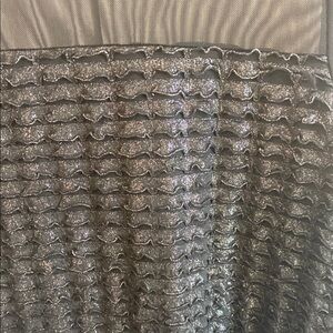 This black blouse features a graphic design with a boxy silhouette and 3/4 sleeves. The lightweight fabric offers a semi-transparent look, adding a touch of elegance. Its round neckline and textured front detail create a sophisticated and stylish appearance.