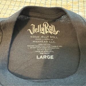 Showcase your style with the black graphic Jelly Roll Tshirt. This short sleeve shirt combines comfort with a bold design, perfect for any casual occasion. NWOT. 2023