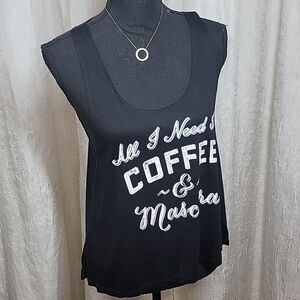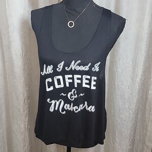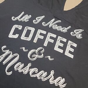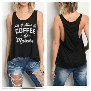 Black Graphic Racer Tank Top "All I need is coffee and mascara"