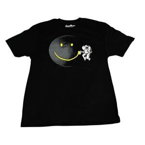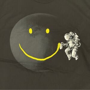Black Graphic Short Sleeve T-Shirt with Smiley Face & Astronaut New without Tags