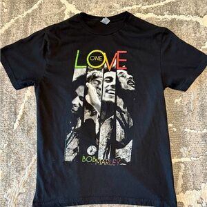 Celebrate the spirit of with this stylish black graphic Bob Marley t-shirt. Featuring vibrant colors and iconic imagery, it's perfect for any fan.